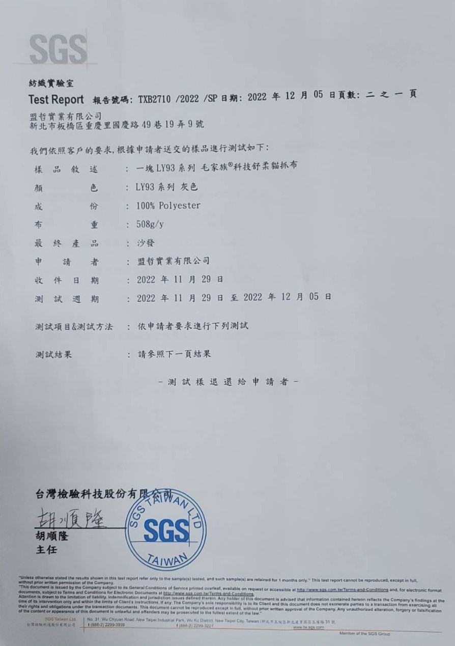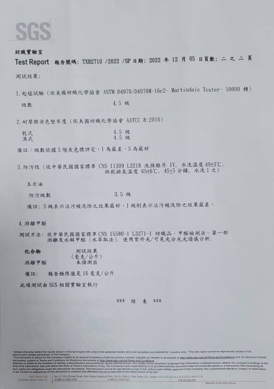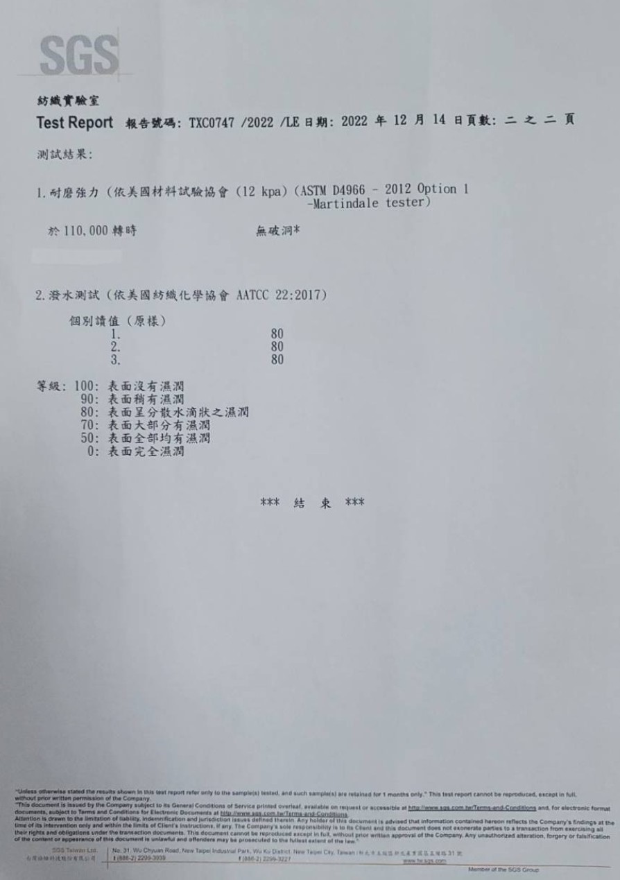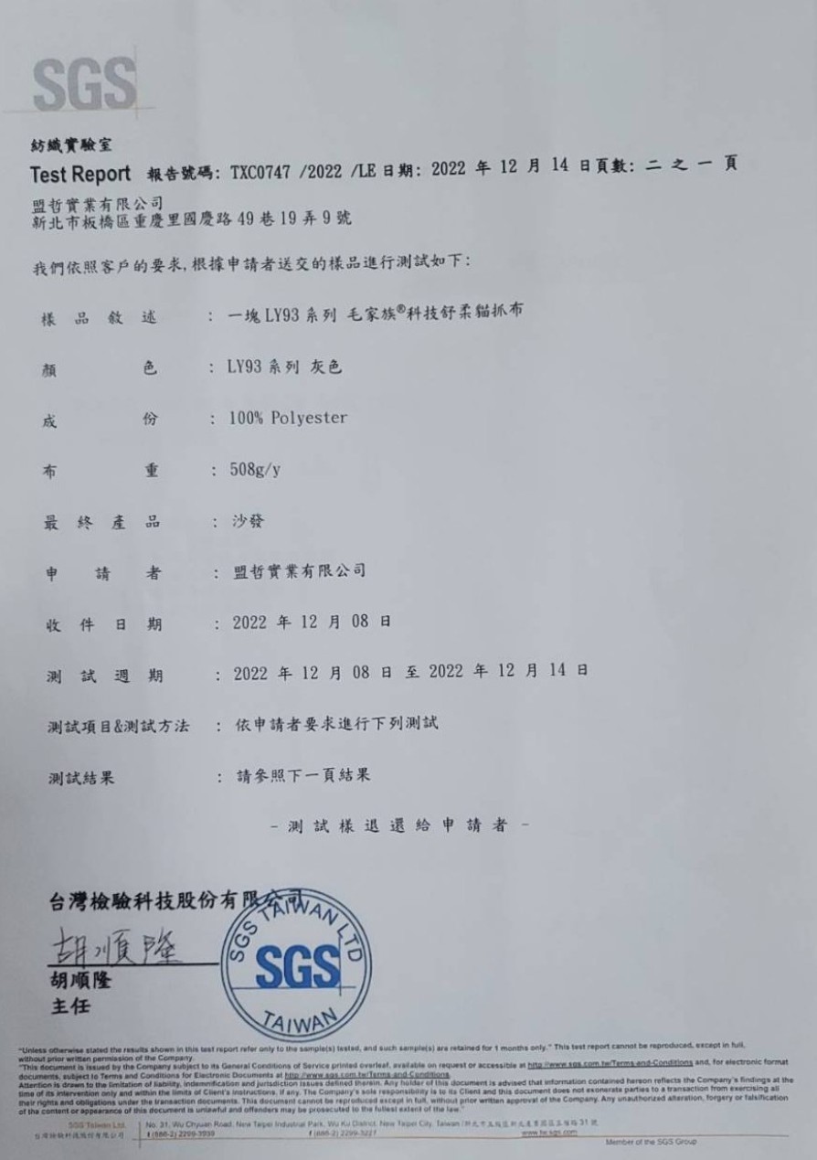 ✦ LY奈米級耐磨布紋皮,基於歐洲化學品管理 高關注物質候選清單(依據歐盟第1907/2006號REACH法規)對191種高關注物質進行篩分社,根據具體的測試範圍和分析技術,樣品中測試的高關注物質濃度都低於0.1%(w/w)全部都通過。