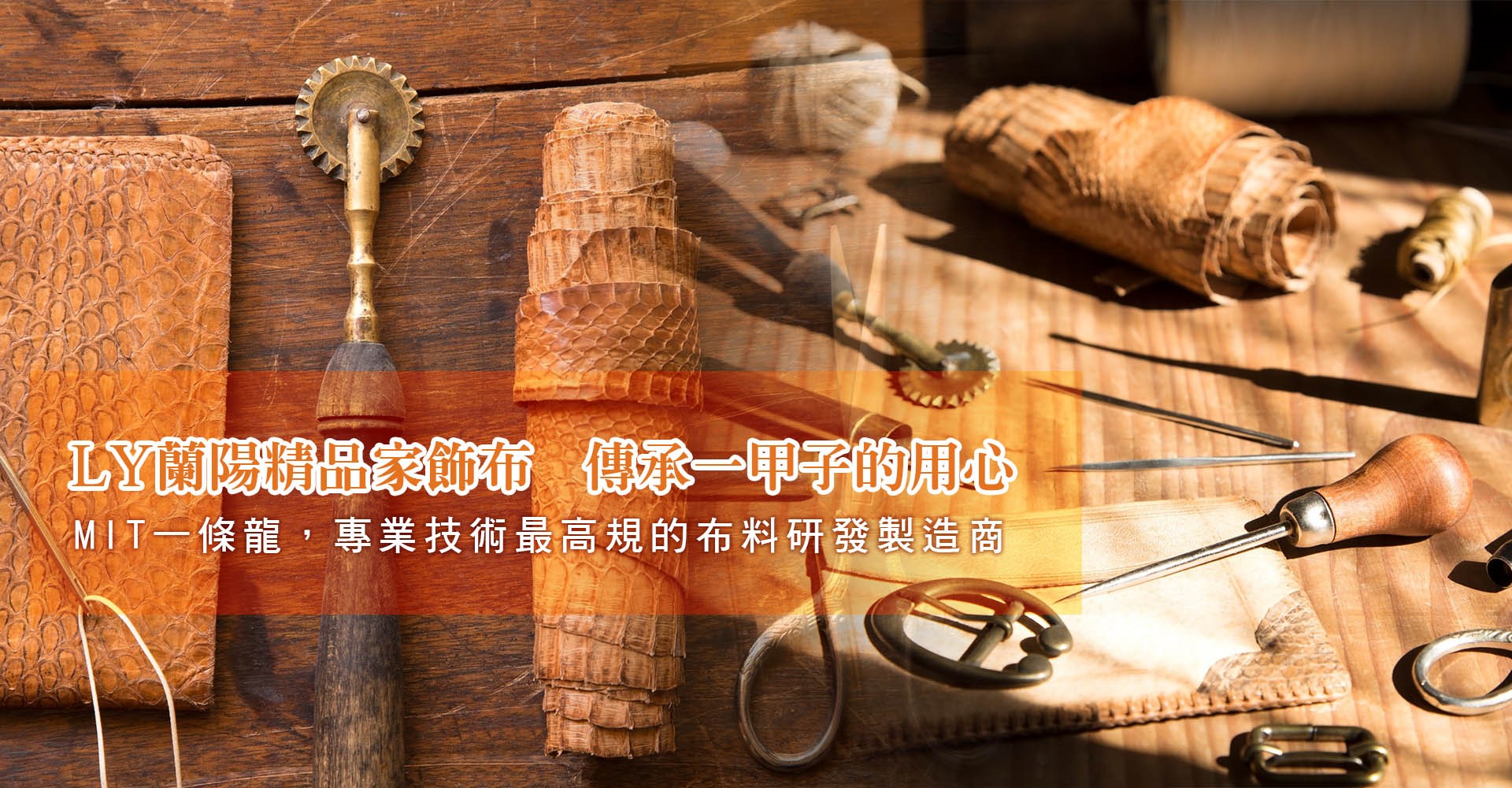 LY蘭陽精品家飾布創立於1960年,至今已60餘年,主要研發、銷售各式國產、進口高品質皮革及布料。在臺灣經濟起飛的60年代,因應其經濟發展後,臺灣大大小小的家庭、飯店及其商業空間,在家飾及裝潢皮革、布料的需求大增下,推出了多款進口高品質真牛皮革、壓紋PVC皮革、壓花PVC皮革、仿動物紋PVC皮革、進口刺繡、緹花布、抗污植絨布、其他特殊纖維布及多款國產高品質機能布料…等,其推出的產品憑藉著高品質和多樣的機能性深受市場好評,現今多款國產頂級機能布更是各大知名傢俱品牌、沙發工廠指名使用。