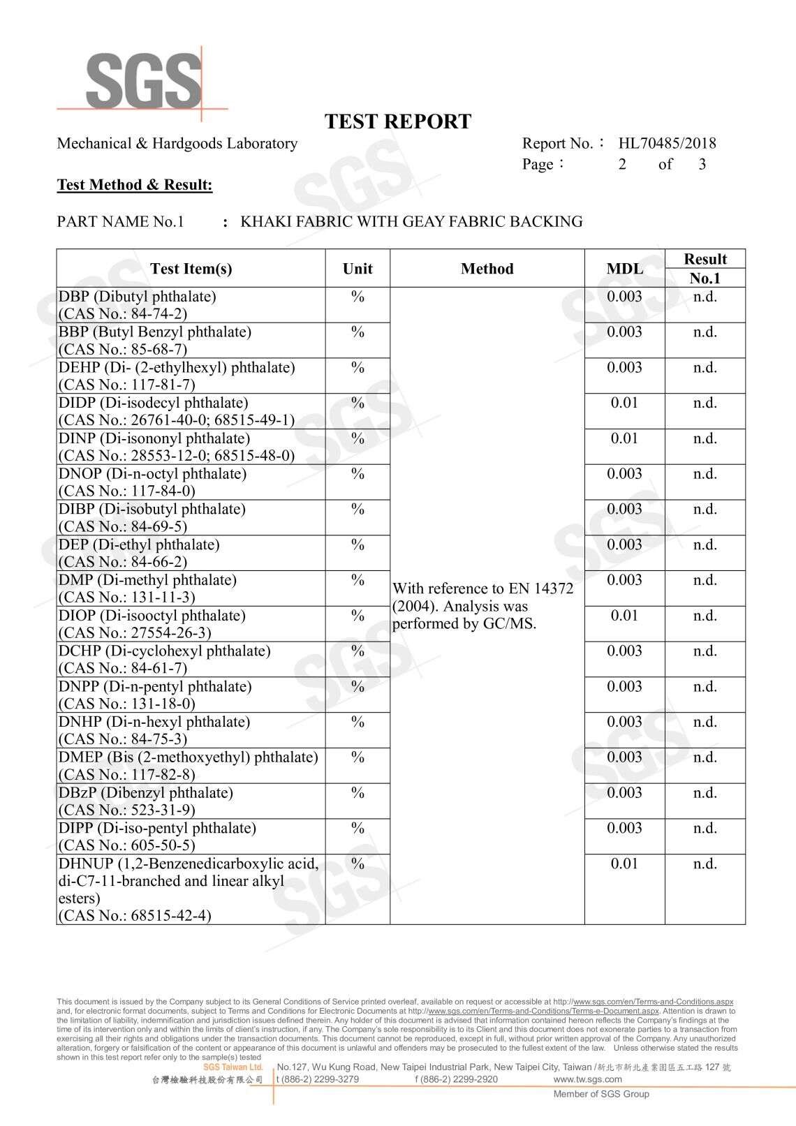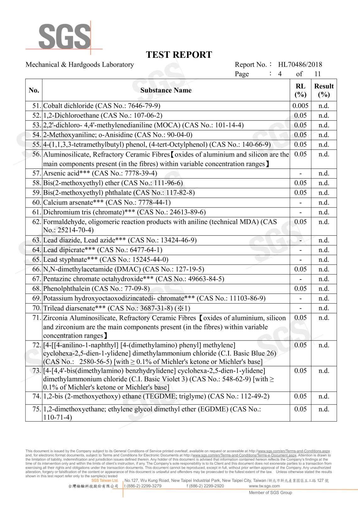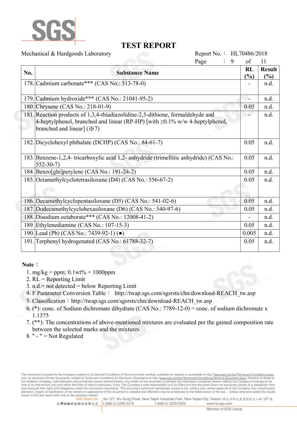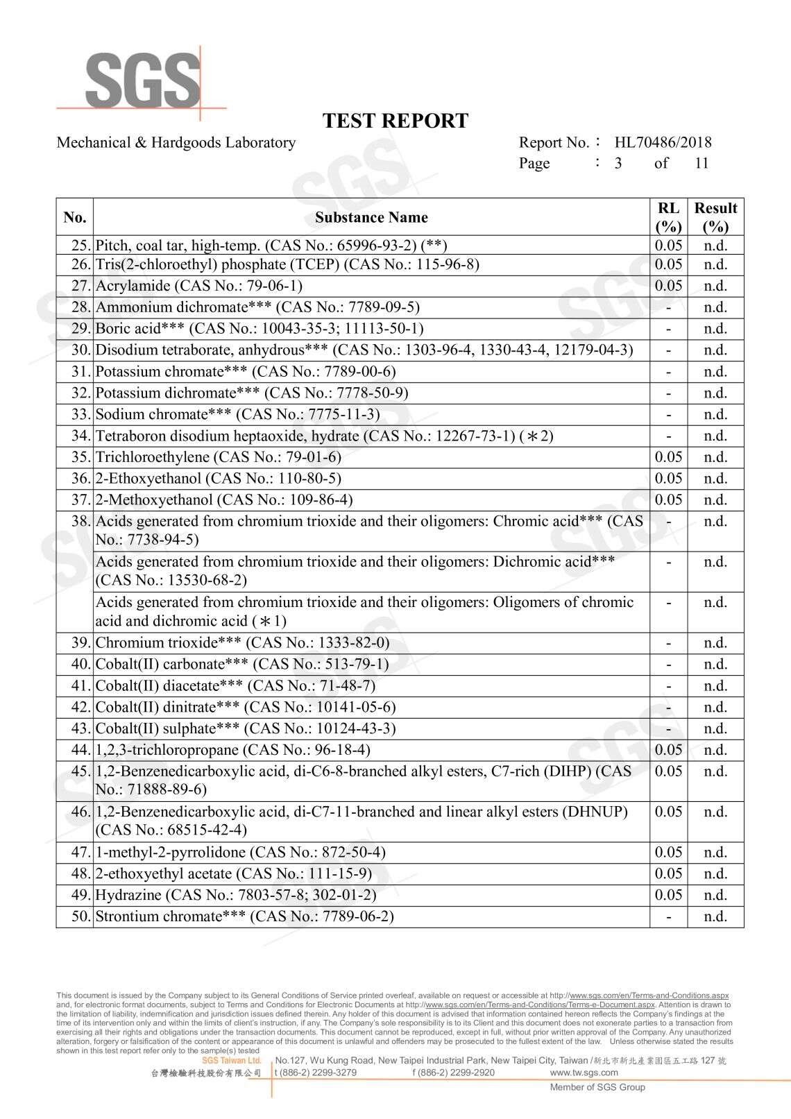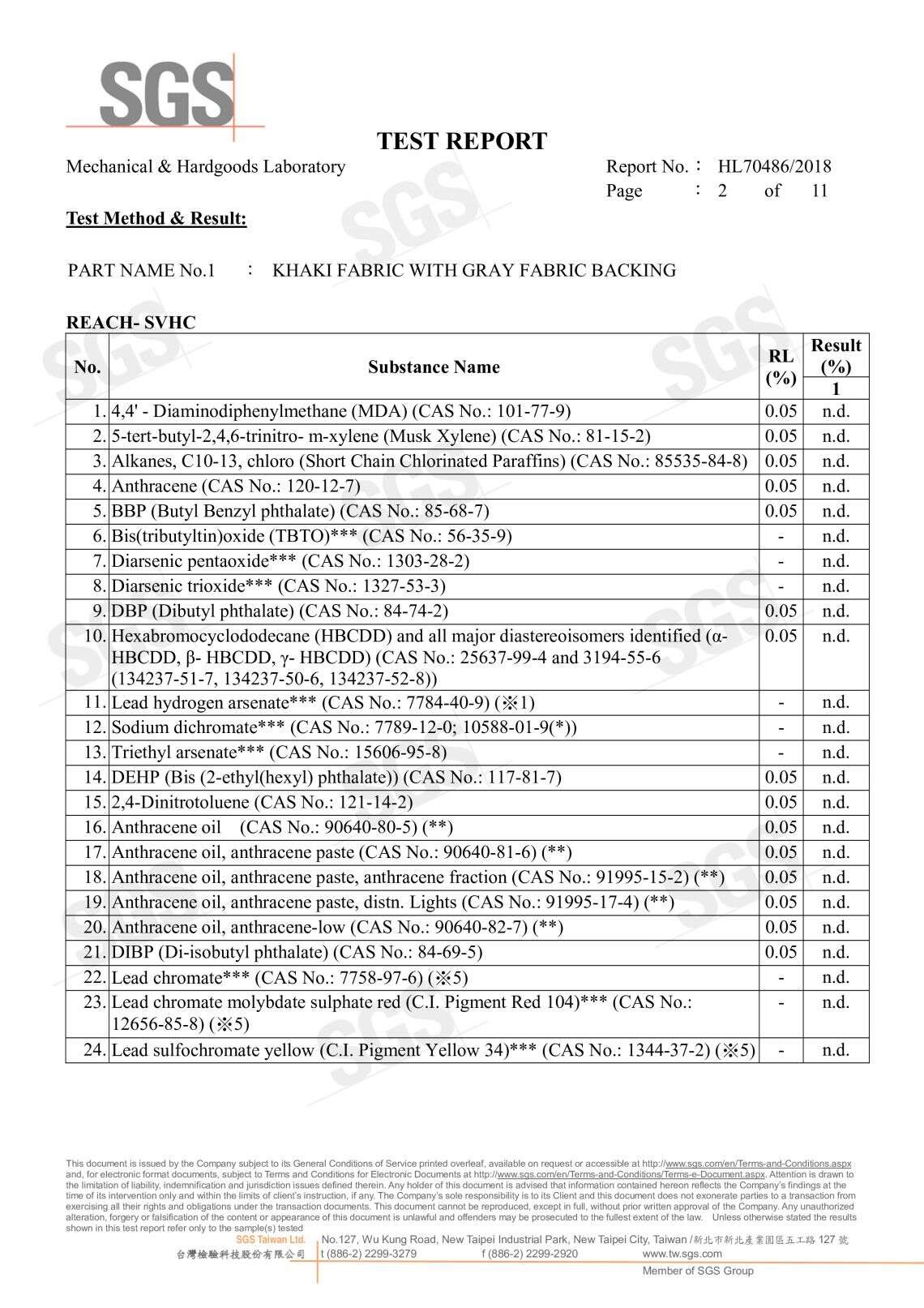 SGS無甲醛證明 191種高關注物質分析P.1 191種高關注物質分析P.2