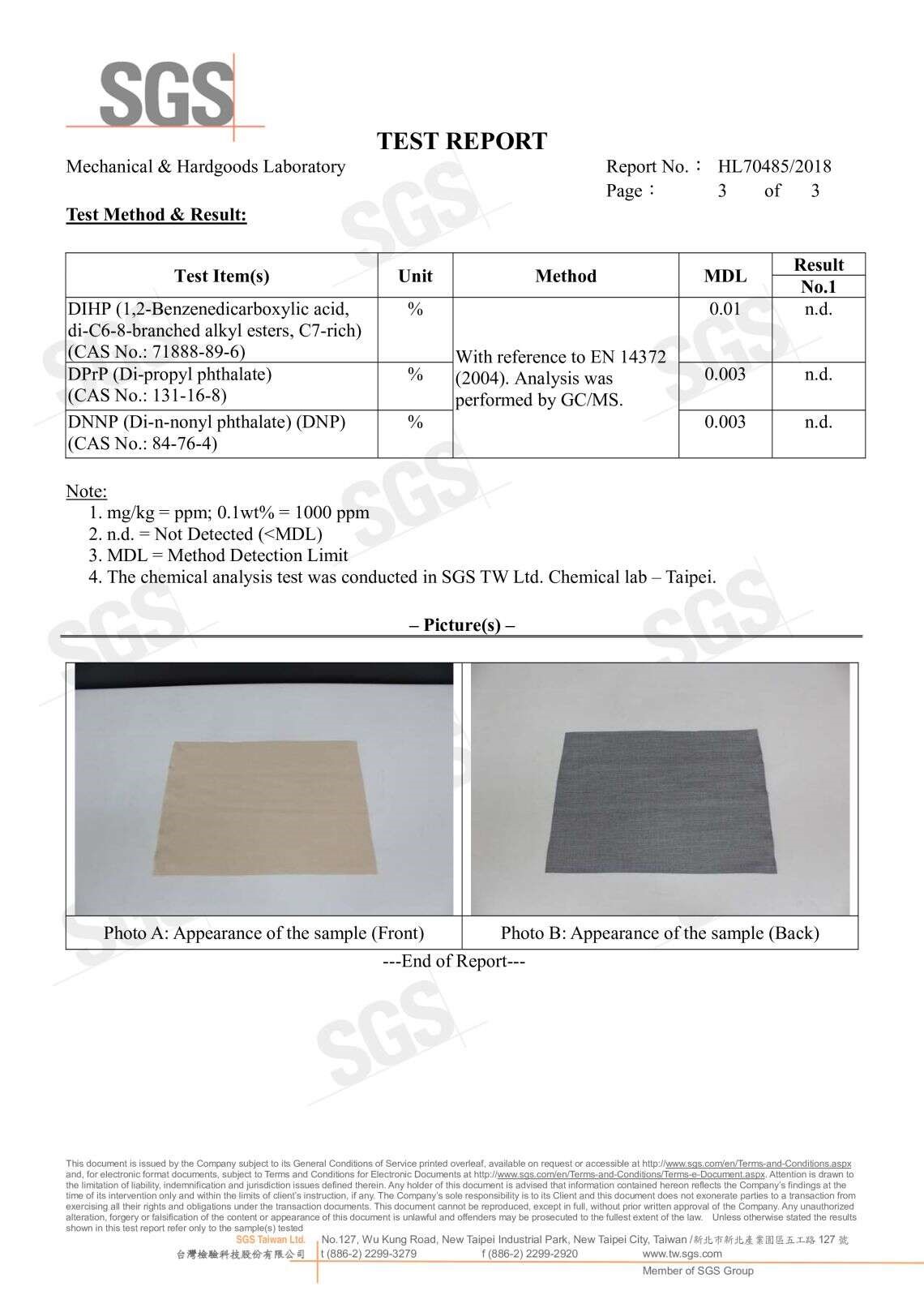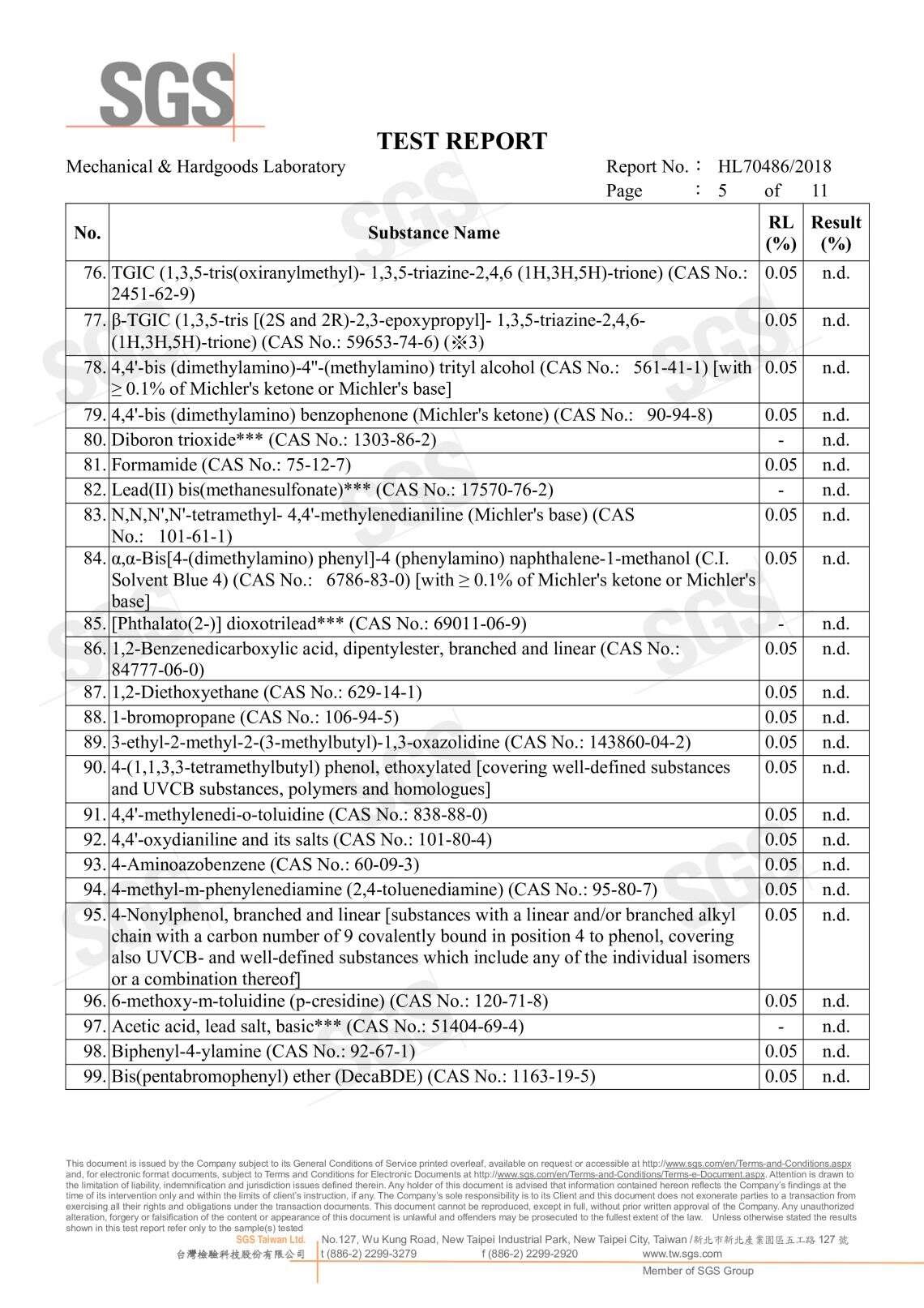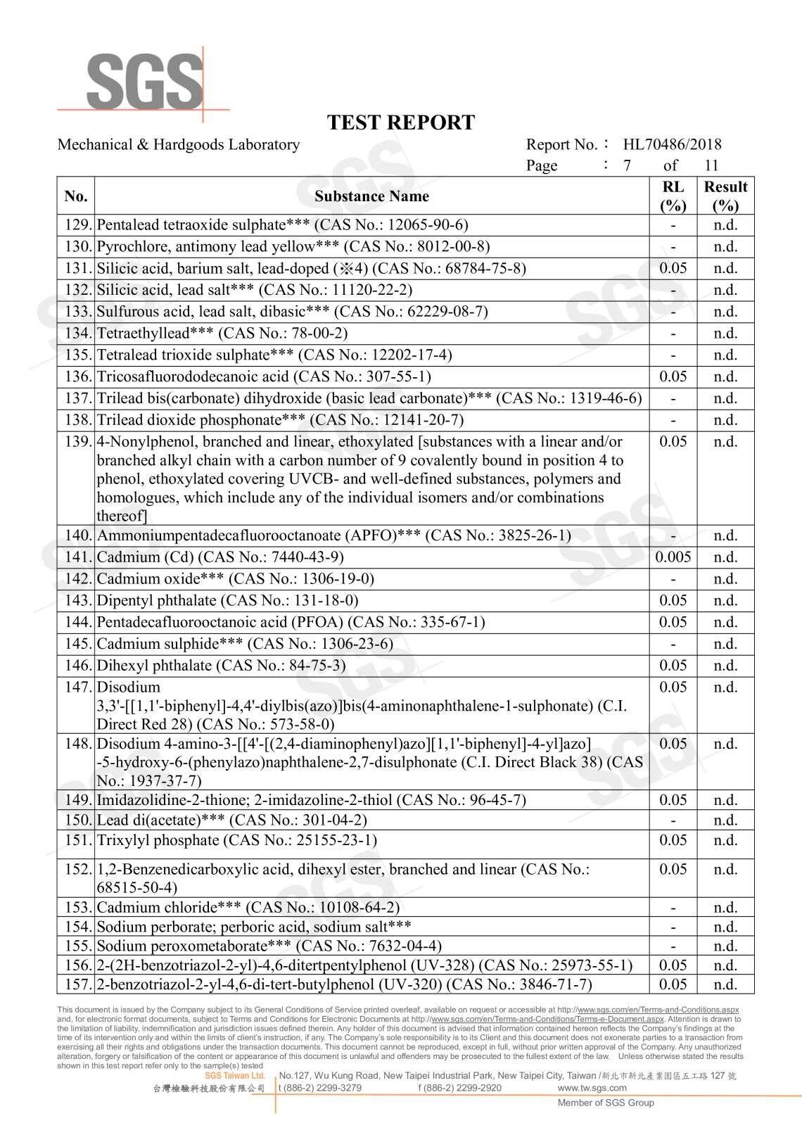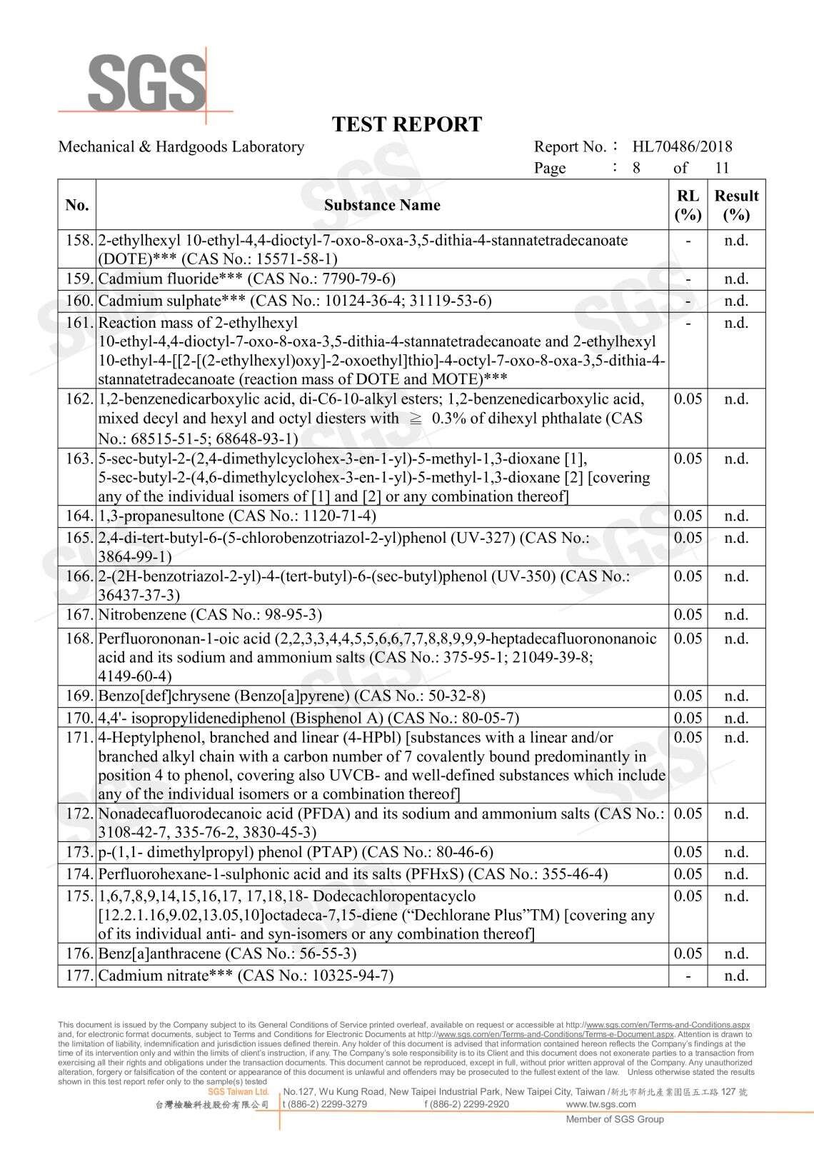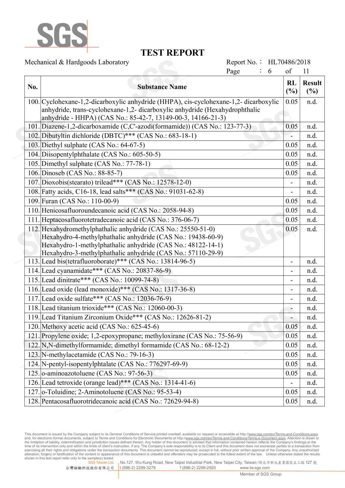 SGS無甲醛證明 191種高關注物質分析P.1 191種高關注物質分析P.2