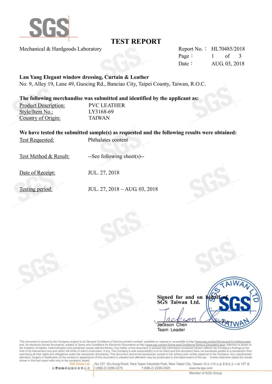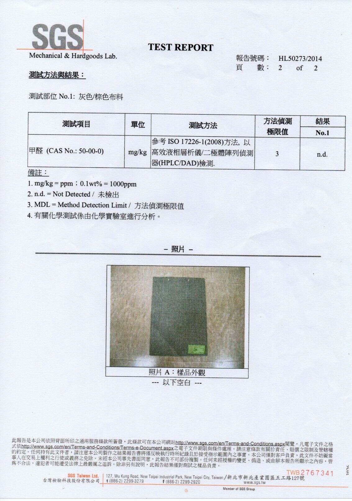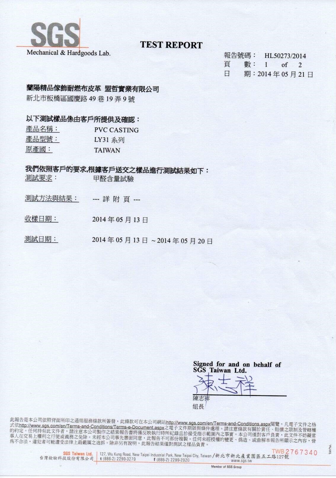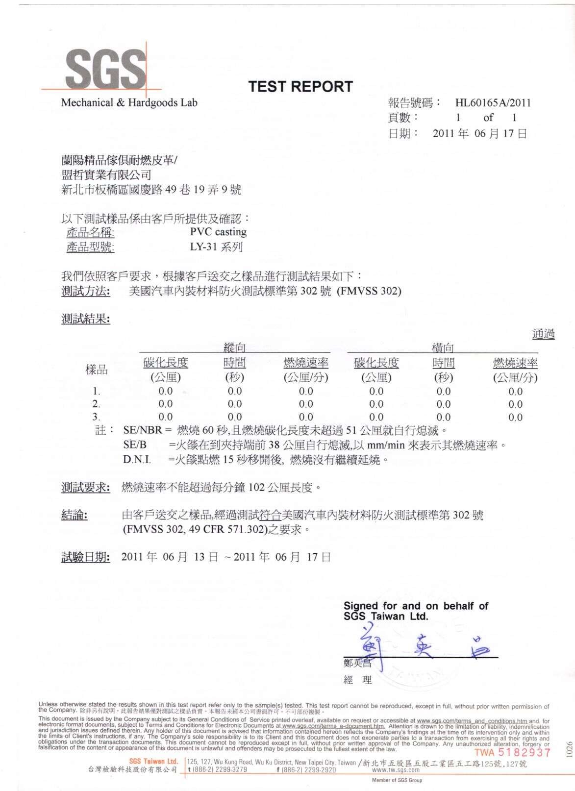 SGS耐燃證明 SGS耐磨證明 SGS無甲醛證明