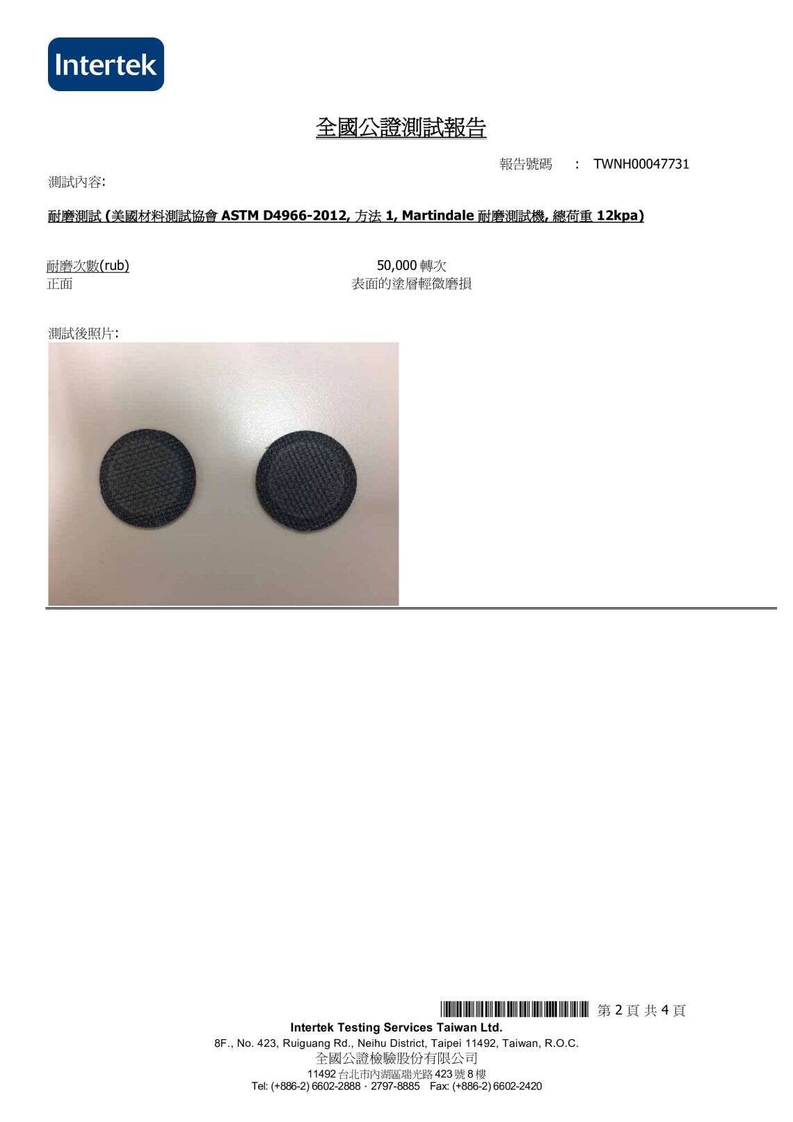SGS耐磨報告P.1 SGS耐磨報告P.2 SGS耐磨報告P.3