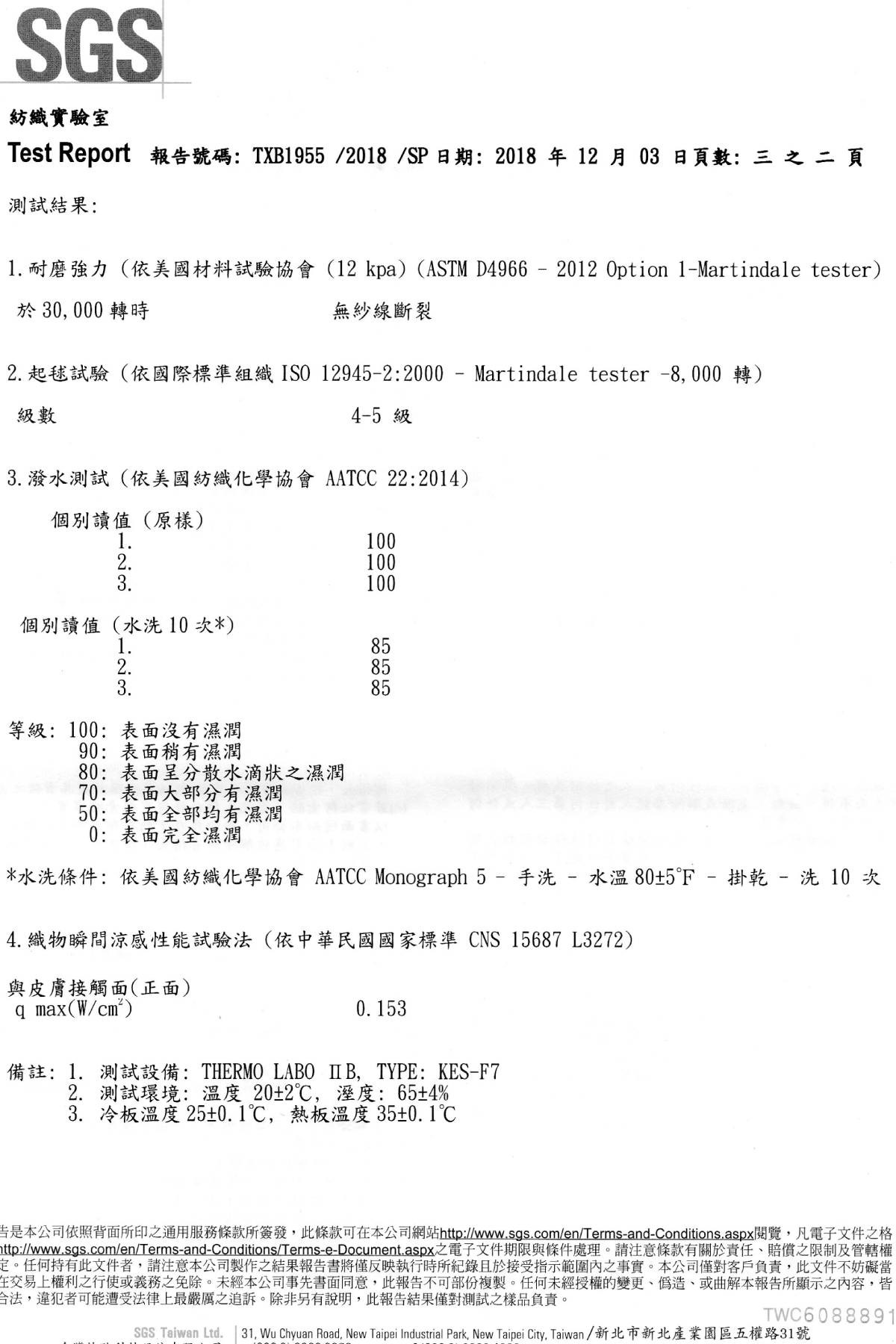 超涼感防油機能沙發布所使用的染整藥劑通過歐盟oekotex認證,不含甲醛及其他對人體有害物質,使用高科技環保型撥水,防潑水效果達到百分之百以上,同時亦通過國際知名公正機構SGS的瞬間涼感測試、耐磨(abrasion)三萬轉以上的測試,以及起毛毬(pilling)測試至少8000次以上。
