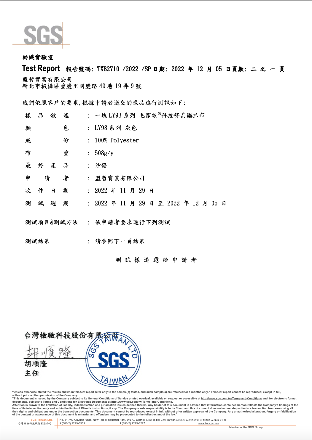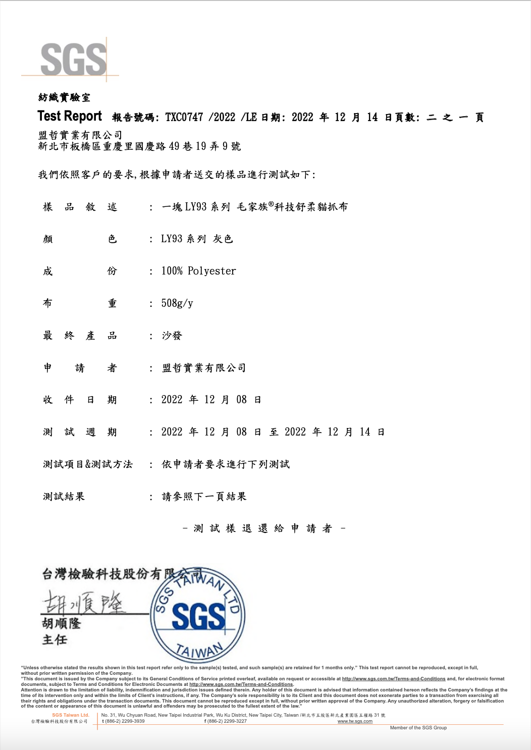 ✦ LY奈米級耐磨布紋皮,基於歐洲化學品管理 高關注物質候選清單(依據歐盟第1907/2006號REACH法規)對191種高關注物質進行篩分社,根據具體的測試範圍和分析技術,樣品中測試的高關注物質濃度都低於0.1%(w/w)全部都通過。